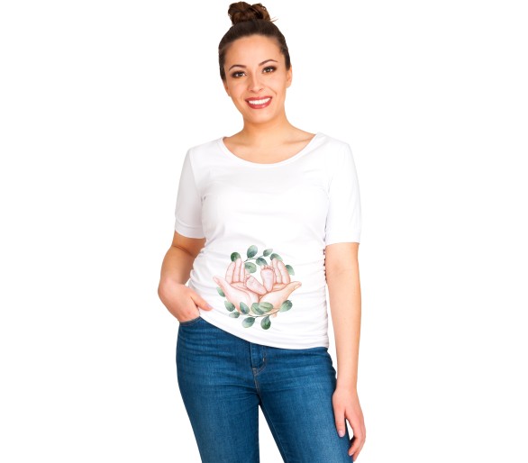 - Marszczenia po bokach bluzeczki dają mnóstwo miejsca rosnącemu brzuszkowi.