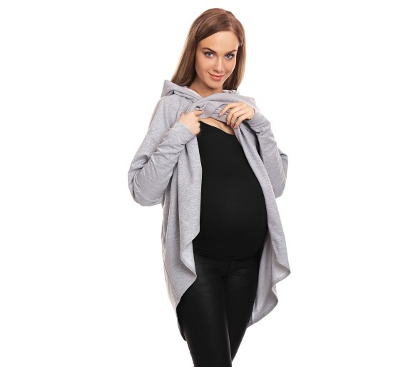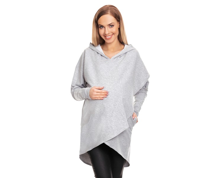 Wygodna i stylowa bluza ciążowa wykonana z miękkiej, elastycznej dzianiny. Asymetryczny krój i praktyczny kaptur zapewniają komfort i swobodę ruchów na każdym etapie ciąży. Doskonała na co dzień – pasuje do legginsów, jeansów i sportowych butów. Podwójna warstwa na zakładkę zapewnia wygodne karmienie dziecka. Bluza posiada dwie kieszenie oraz miejsce na ciążowy brzuszek.