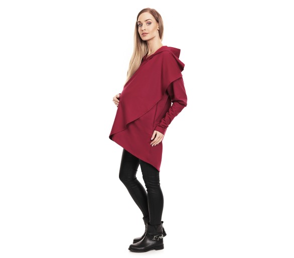 Wygodna i stylowa bluza ciążowa wykonana z miękkiej, elastycznej dzianiny. Asymetryczny krój i praktyczny kaptur zapewniają komfort i swobodę ruchów na każdym etapie ciąży. Doskonała na co dzień – pasuje do legginsów, jeansów i sportowych butów. Podwójna warstwa na zakładkę zapewnia wygodne karmienie dziecka. Bluza posiada dwie kieszenie oraz miejsce na ciążowy brzuszek.