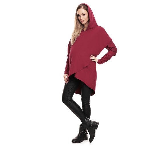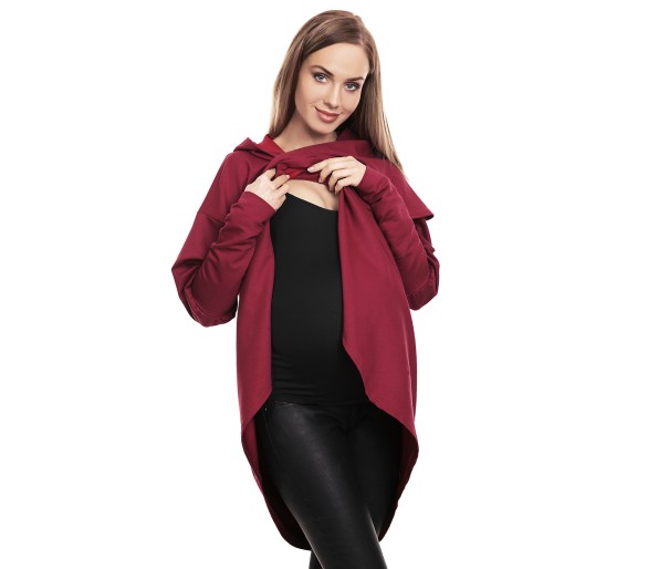 Wygodna i stylowa bluza ciążowa wykonana z miękkiej, elastycznej dzianiny. Asymetryczny krój i praktyczny kaptur zapewniają komfort i swobodę ruchów na każdym etapie ciąży. Doskonała na co dzień – pasuje do legginsów, jeansów i sportowych butów. Podwójna warstwa na zakładkę zapewnia wygodne karmienie dziecka. Bluza posiada dwie kieszenie oraz miejsce na ciążowy brzuszek.