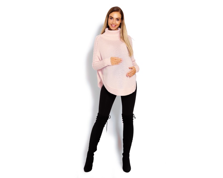 Sweter Ciążowy Ponczo Pudrowy Latte